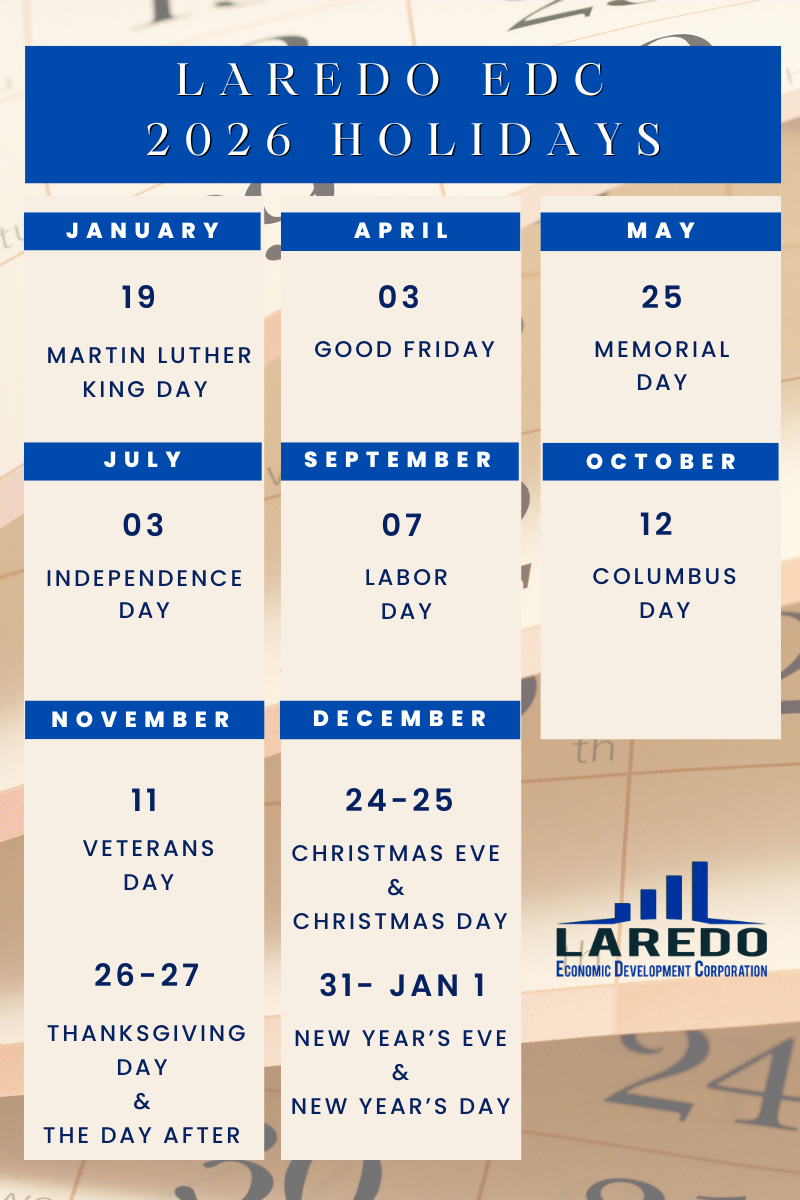 Every year, the Laredo EDC hosts an array of events to celebrate National Economic Development Week in Laredo Texas. This year the Economic Development Week will be celebrated on May 12-16, 2025.